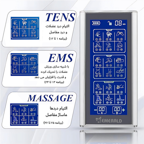 دستگاه فیزیوتراپی ،تنس ،ای اس ام،ماساژ عضلانی امرالد|36 حالته |3در1